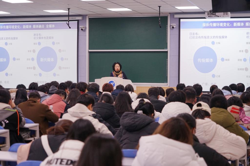 12月13日下午,新闻宣传工作能力提升培训班第二讲在鄠邑校区博览楼108教室举办。西北大学新媒体研究院院长韩隽教授应邀来校作题为《全媒体时代下高校新闻报道形态创新》专题讲座,学校宣传思想文化工作者、人文学院教师、大学生新闻社及学通社130余名师生参加了报告会。