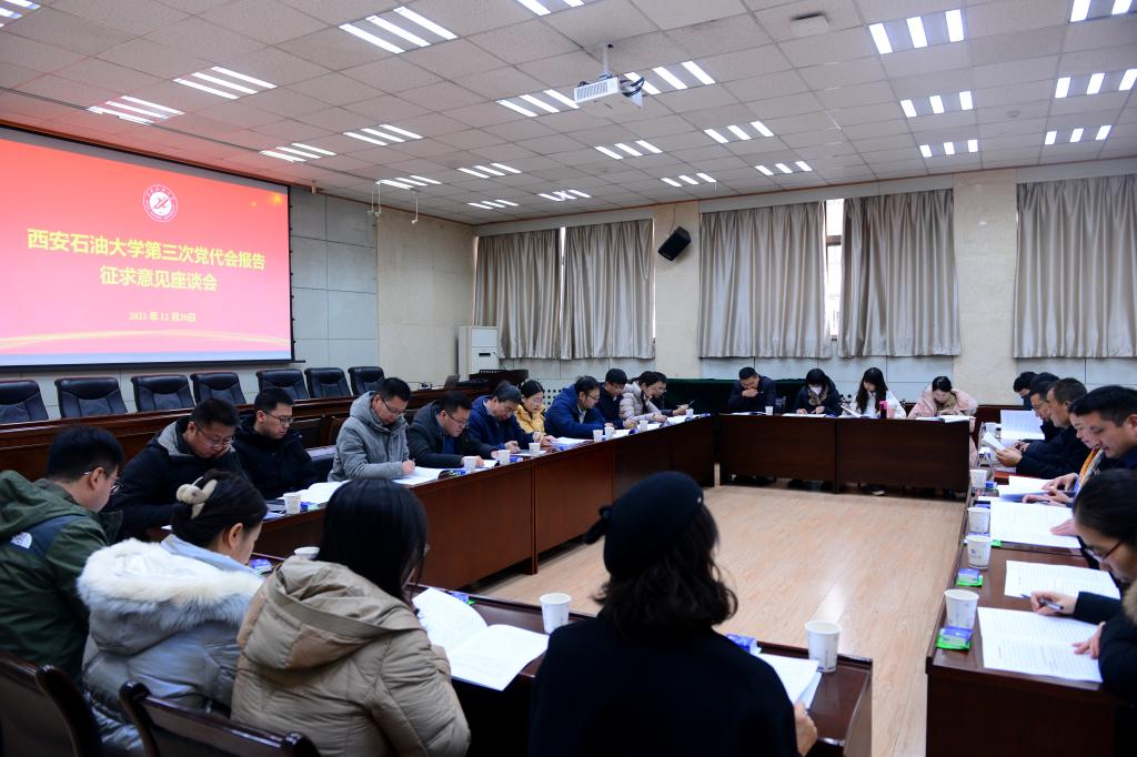 为充分发扬民主,集思广益,凝聚共识,起草好党代会报告,根据学校第三次党代会筹备工作安排,12月19日至21日,学校党委在雁塔校区和鄠邑校区召开了党代会党委工作报告征求意见系列座谈会。学校党政领导常江、王进富、张木、王辉强、杨战社、苏文甫、程永清、张荣军、张君涛、张骁勇、樊晓民分别主持或参加有关座谈会。