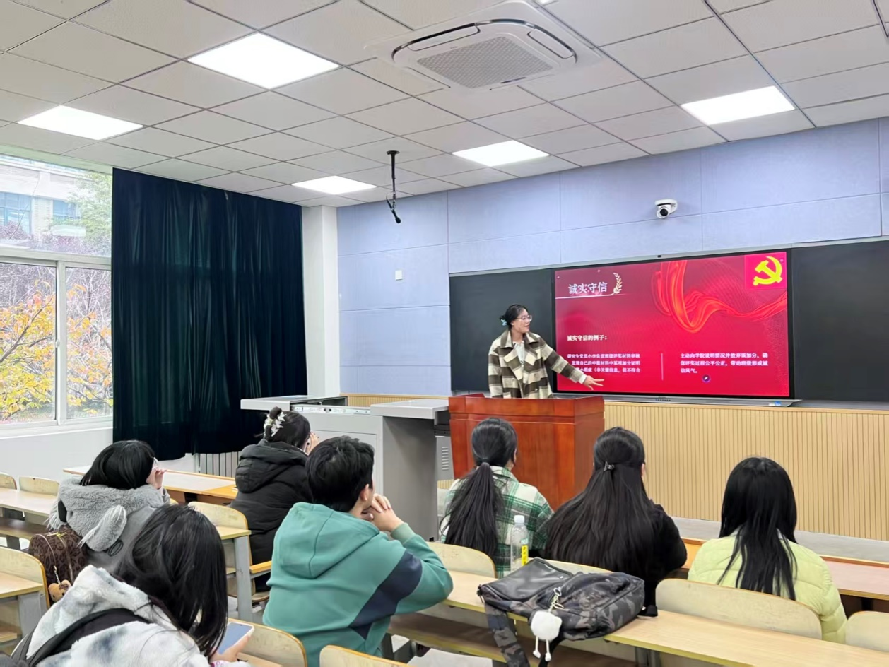 外国语学院召开“不忘初心、牢记使命”学习党的二十届四中全会精神主题团日活动。团支书通过PPT,从全会核心议程、“十五五”规划部署及青年使命三个维度进行了系统解读,并巧妙结合外语专业特色,指出在“网络强国”“文化繁荣”等国家任务中,多语种服务、人工智能翻译、跨文化传播等领域是外语人的用武之地。在互动研讨中,翻译专业同学分享了在“中国典籍外译”项目中如何更好地传递中国文化智慧的思考;学习委员则从“统筹发展和安全”角度,阐述了坚守“学术诚信”底线的重要性。活动有效引导同学们将国家大政方针与专业学习、学术研究紧密结合,深化了对外语人作为文化交流桥梁、学术安全守护者角色的认识,凝聚了“强国有我”的共识与担当。