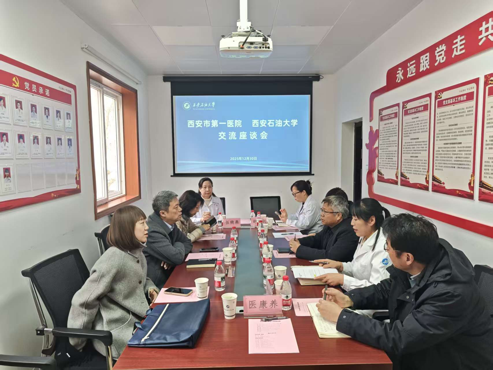 张骁勇对专家团队的到访表示热烈欢迎,感谢西安市第一医院长期以来对我校医疗保障工作的大力支持与无私帮扶,随后陪同薛刚一行实地察看校医院诊疗环境、设备配置及服务流程,全面精准掌握校医院运营现状与发展需求。张骁勇详细介绍学校办学沿革、发展规划及学科特色,强调我校始终坚守“建设幸福西石大、培养行业专业人才”核心使命,在基层医疗服务提质增效、教职工及离退休人员健康精准管理等工作中,亟需优质MDT诊疗资源提供专业化指导与全方位支撑。薛刚对我校的热情接待表示感谢,并介绍了西安市第一医院历史沿革、优势专科建设成效及MDT协作诊疗实践成效,明确医院正全面贯彻落实国家医疗健康战略部署,依托“特色健康管理与医康养深度融合”创新体系形成显著优势,希望与学校医院聚焦健康管理优化、养老服务精准对接、康复诊疗能力提升三大方向,深化务实合作、实现互利共赢。双方围绕优质医疗资源下沉落地、急诊急救绿色通道搭建、疑难病例双向转诊、医疗服务能力提升及MDT协作流程优化等医联体建设关键议题深入研讨,为后续深化医校联动、构建优质高效的健康服务体系筑牢坚实基础。