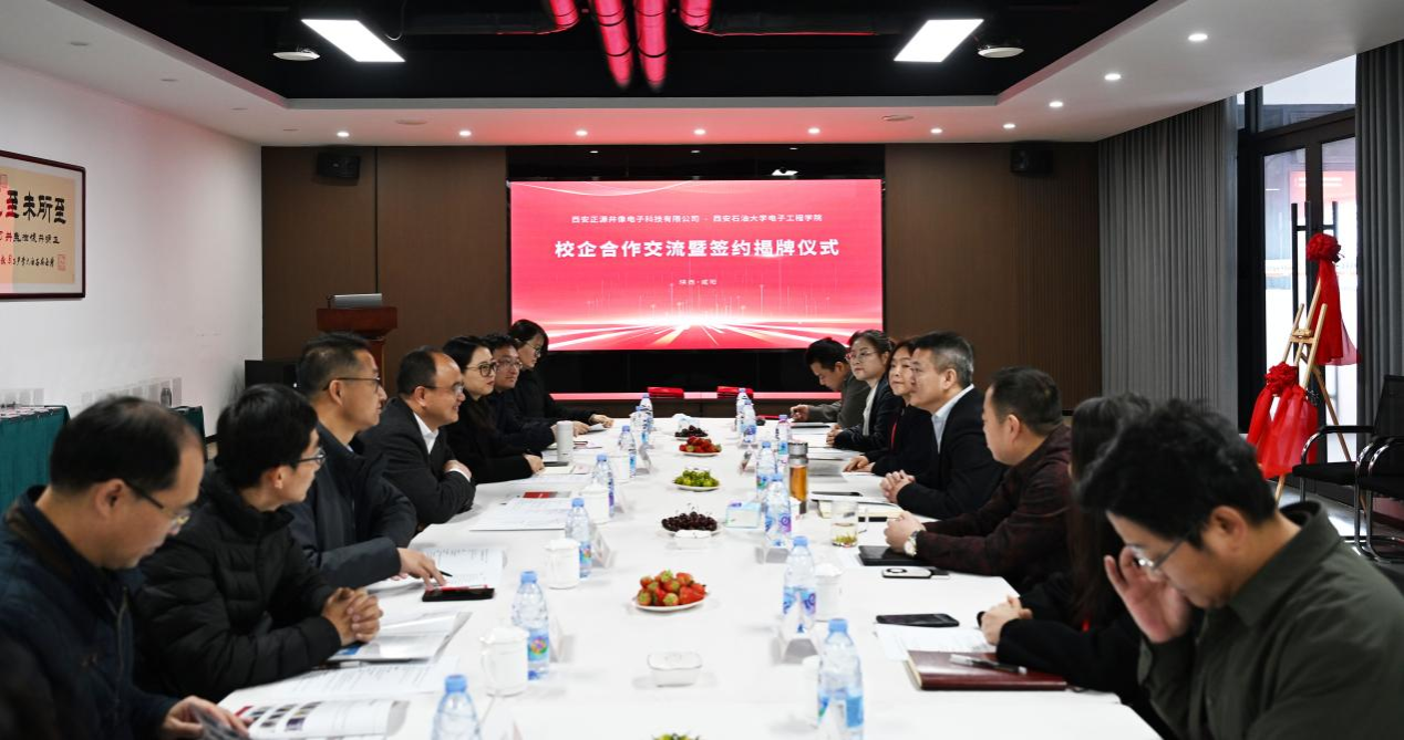 在座谈交流环节,电子工程学院相关负责人介绍了学院发展概况与合作意向,并就学生实习、就业及校企协同育人机制作了具体阐述,同时围绕科研方向、现有成果及转化需求进行了详细介绍。
