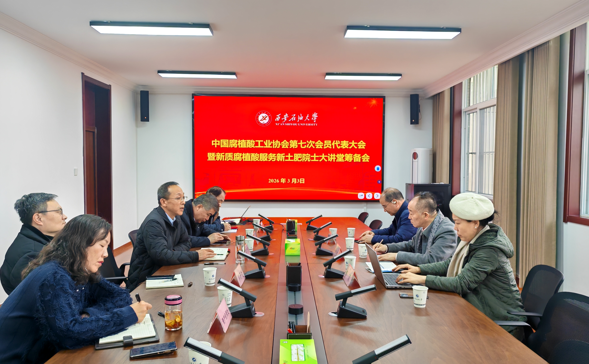 3月3日下午,中国腐植酸工业协会会长曾宪成、协会办公室主任李荣、秘书李双一行莅临我校,就“中国腐植酸工业协会第七次会员代表大会暨新质腐植酸服务新土肥院士大讲堂”筹备工作与我校进行深入沟通协商。会议在鄠邑校区第四会议室举行,由副校长张君涛主持。
