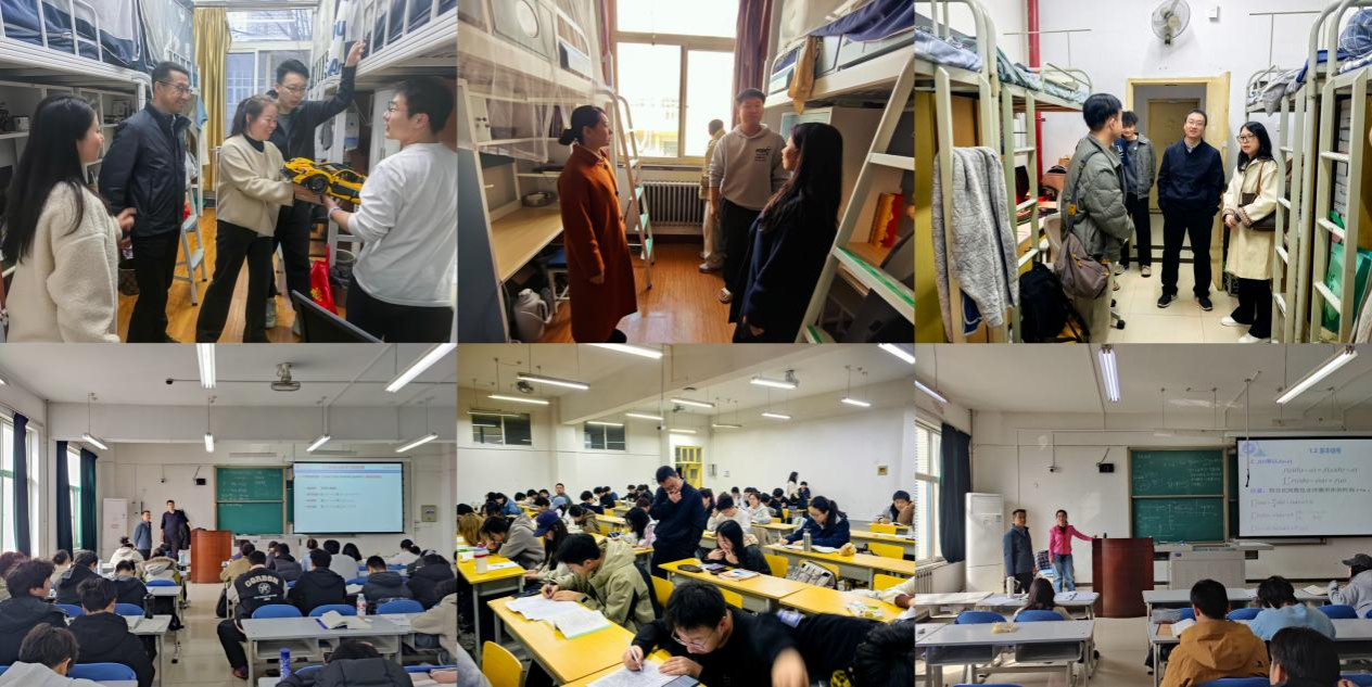 理学院于3月2日至5日开展全覆盖走访检查工作,党委书记席利哲、院长折延宏、党委副书记杨富民带领全体辅导员和部分班主任分批次深入学生宿舍,了解返校适应和学习生活需求,围绕专业认知、职业规划交流座谈,收集意见建议并现场解答困惑。院领导带队深入课堂,察学情、访状态,实现首周全部课程检查全覆盖。学院还以班会和年级大会形式为全体本科生开展“开学第一课”,引导学生端正学习态度、加强学风建设,重点强调预防电信诈骗、加强网络文明教育,守护校园安全稳定。