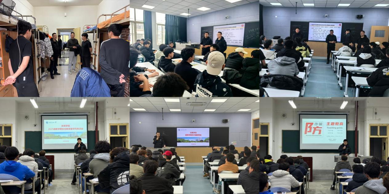 体育学院紧紧围绕学生成长需求和校园安全实际,多措并举做好新学期学生安全教育暨学风教育工作。学院领导班子及全体辅导员深入课堂一线随堂听课,重点关注学生听课专注度、课堂参与度,课后与学生、任课教师深入交流,反馈教学建议,推动教学与学生工作协同发力。党政领导班子带队深入学生宿舍开展全面安全检查,排查用电、消防等隐患,建立台账立行立改,结合真实案例开展防火、防盗、防诈骗安全教育,同时关注学生心理状态,做好心理疏导。学院依托各年级教育大会开展消防安全、交通安全、防传染病安全等多元安全教育,利用线上平台持续推送安全知识,构建全方位校园安全防护体系。