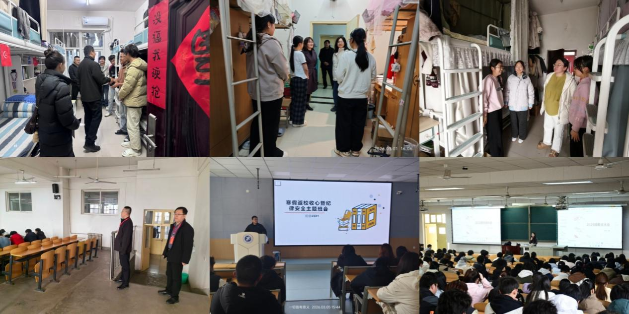计算机学院多措并举筑牢新学期学生管理根基,学院领导班子率先深入宿舍慰问学生、排查安全隐患,走进课堂听课查课,累计检查宿舍36间、查课25次;全体辅导员、班主任全面覆盖学生宿舍与课堂,累计检查宿舍503间、查课89次。各年级召开年级大会、各班召开主题班会,围绕安全稳定、传染病预防、早操晚自习、电动车安全、防电信诈骗等内容开展宣讲。学院同步开展学业警示教育,摸排重点关注学生情况,扎实推进就业促进与引导,开展精细化就业指导,全方位覆盖学生学习生活各环节。