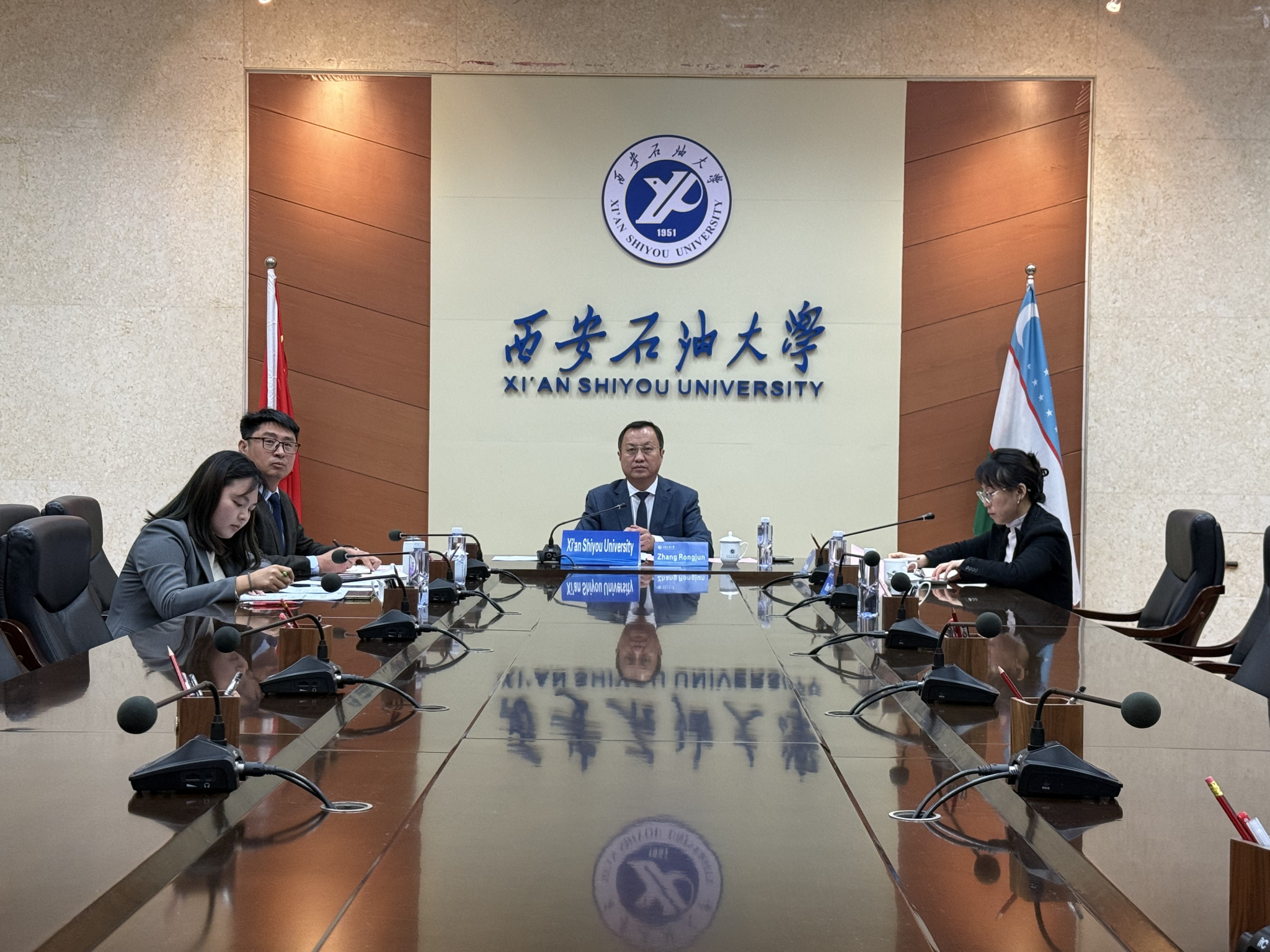 3月6日下午,我校与乌兹别克斯坦能源部、乌兹别克斯坦高等教育、科学与创新部(以下简称“能源部”、“教育部”)及撒马尔罕国立大学召开西安石油大学乌兹别克斯坦分校建设工作线上会议,会议在雁塔校区会议中心第二会议室举行。能源部副部长乌米德・马马达米诺夫、教育部副部长萨多尔・拉贾博夫、撒马尔罕国立大学教学事务副校长艾哈迈德琼・索莱耶夫、科研副校长哈基姆・胡什瓦克托夫、国际合作副校长阿克马尔・阿哈托夫、乌兹别克斯坦大唐国际投资有限公司董事长汪小又等线上参会。副校长张荣军出席会议。