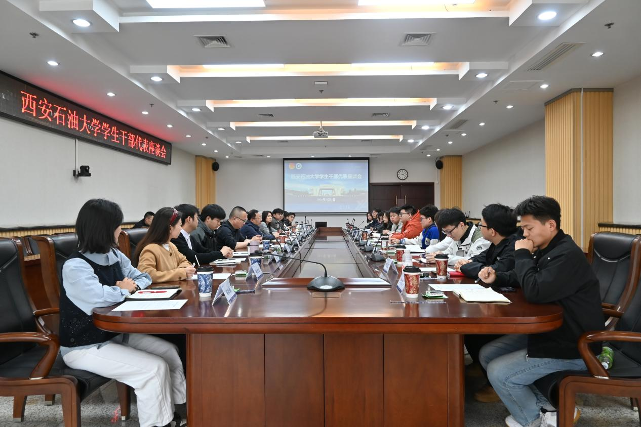 为贯彻2026年校领导班子工作务虚会精神,发挥学生干部桥梁纽带作用,重塑学生“四自”体系,引导学生干部发挥主观能动性,主动参与学校事务管理,3月12日下午,学校在鄠邑校区第二会议室召开学生干部代表座谈会。副校长种宇宏出席会议并讲话,党委学生工作部、校团委、研究生工作部等单位负责人,校学生会、研究生会主席团成员及各部门负责人,校团委各中心、直属社团负责人,校长助理代表参加会议。