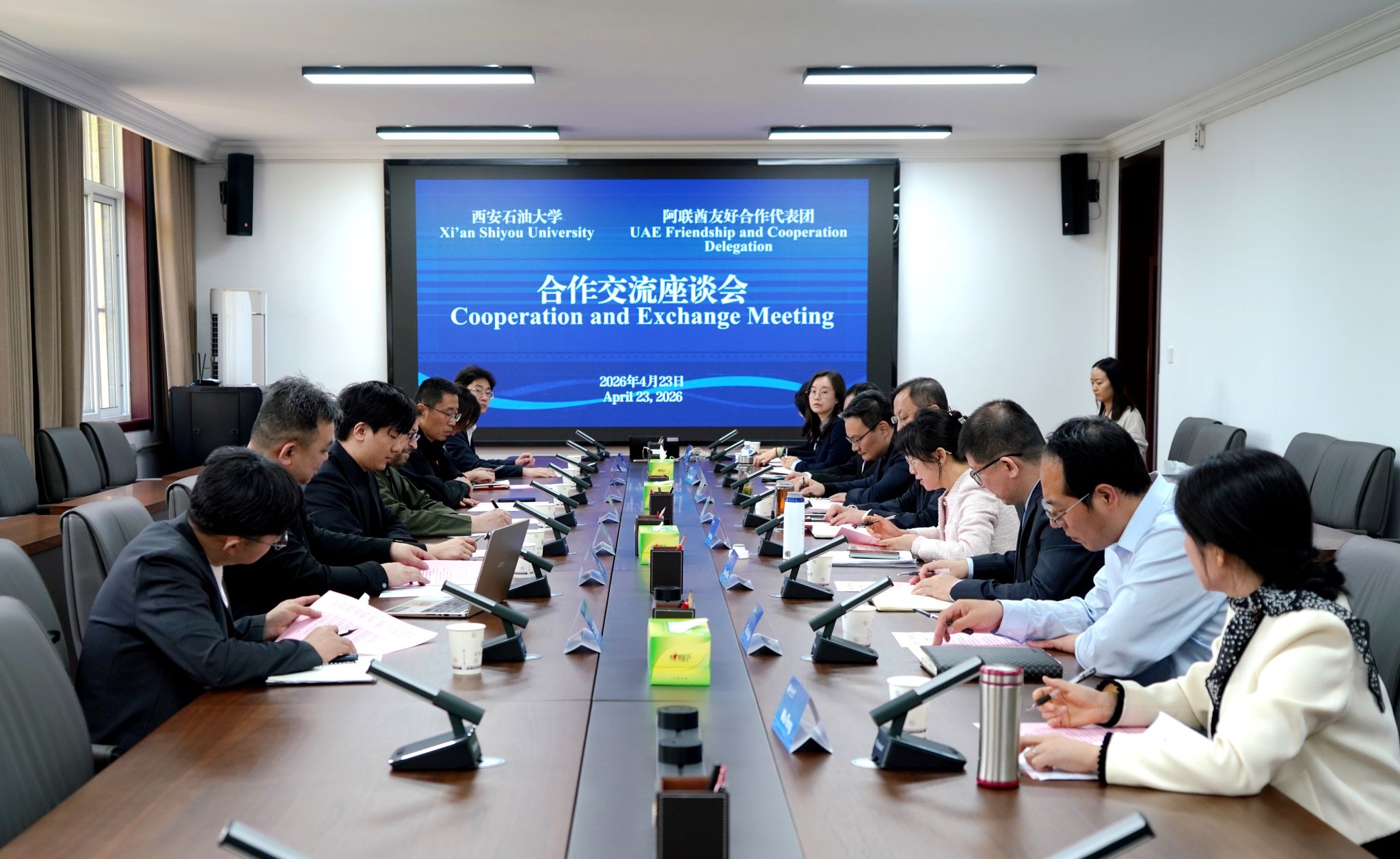 4月23日下午,阿联酋阿布扎比投资集团、阿联酋皇室资本基金投资公司、亚洲地区中国和平统一促进会等联合代表团到访我校,合作交流座谈会在鄠邑校区第三会议室举行。副校长张荣军,科研处、国际合作与交流处、石油工程学院、地球科学与工程学院相关负责人及教师代表参会。