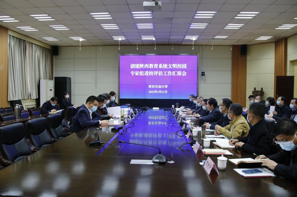 陕西教育系统文明校园专家组意见反馈会于31日下午在雁塔校区第一会议室召开。反馈会由专家组组长樊建武主持。专家组成员根据各自负责的检查内容,先后反馈了评估意见,组长樊建武代表专家组对我校创建陕西教育系统文明校园工作情况进行了正式反馈。他指出,西安石油大学在创建陕西教育系统文明校园过程中,深入贯彻习近平总书记关于精神文明建设的重要论述,将精神文明建设作为立德树人的重要抓手,政治站位高,创建目标明确,安排部署全面有序;对照标准创建,创建质量逐步提升;围绕中心工作,推动事业发展有效。西安石油大学文明校园创建工作取得了较为明显的创建成效,一是坚持党建引领,领导班子建设坚强有力;二是坚持价值引领,思想政治工作成效显著;三是坚持文化引领,道德风尚水平不断提升;四是坚持组织引领,精神文明内生动力充分彰显;五是坚持目标引领,办学质量和综合实力显著提升。