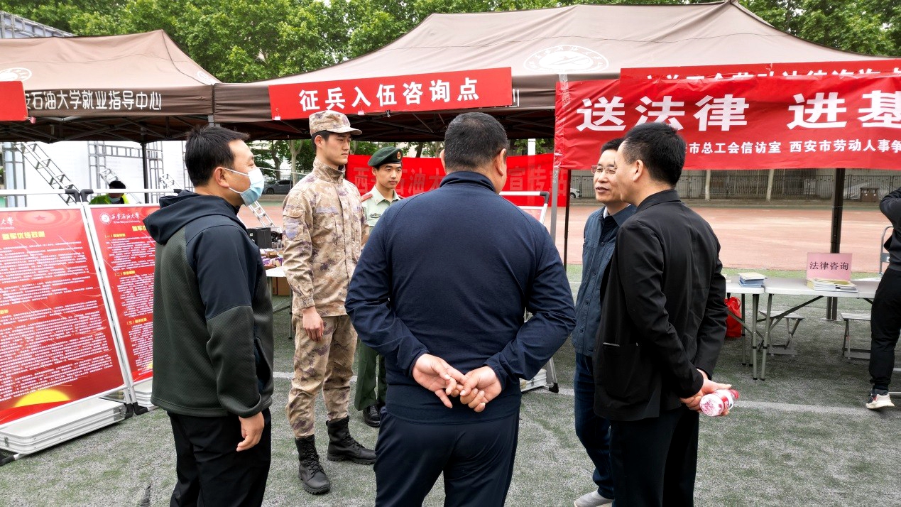 陕西省教育厅二级调研员白炀、陕西省高等学校毕业生就业服务中心主任陈靖莅临我校调研指导,与用人单位亲切交流,深入了解企业招聘需求,征求高校人才培养意见建议。我校就业指导中心全体成员,各院(系)学生工作主要负责人、学生工作办公室主任、毕业班辅导员精准对接,现场指导毕业生投递简历,推介困难毕业生就业。